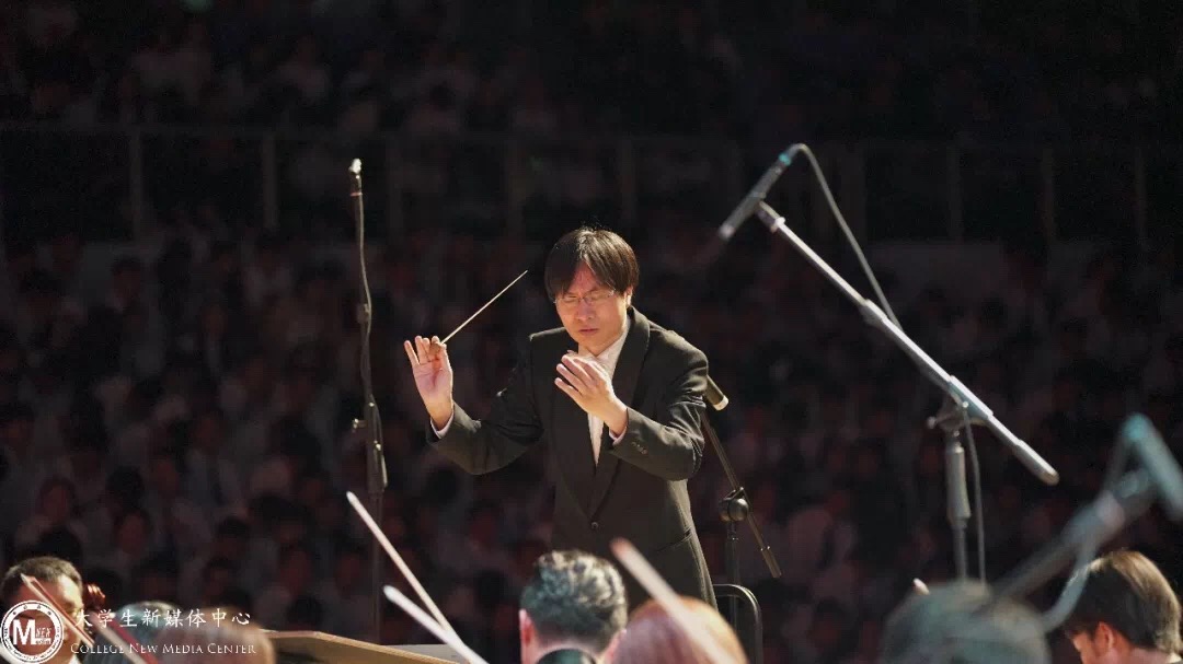 音乐会在9000余名观众大合唱《中华人民共和国国歌》中拉开帷幕。整场音乐会,由中央音乐学院指挥系教授沈浩执棒,同时担任音乐知识科普解说员。指挥、演奏、讲解合为一体的演出形式,不仅使在场师生了解了每首经典作品背后的故事、音乐发展历史、乐曲旋律表达方式,更起到了帮助听众解读音乐、感受音乐、零距离感触音乐的良好效果。
