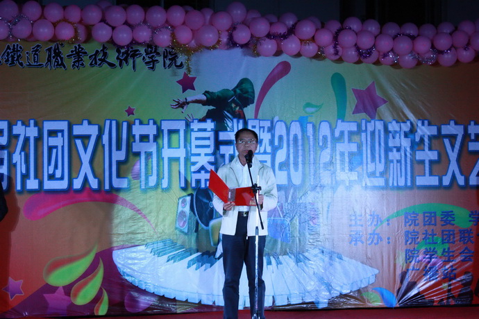 9月23日,在东校区的迎新晚会上,党委副书记曹炳志代表学院向2012级新生致以问候,同时对新生能够理解因新校区建设给新生各方面生活带来的不便的理解表示感谢,希望2012级新生学习进步、学业有成。