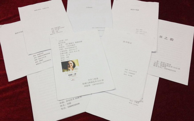 为丰富学生校园文化生活,培养学生好读书、读好书的良好习惯,激发学生阅读兴趣,根据学院“我的中国梦•书香铁院”第二届读书节活动方案的安排,由院团委主办,院广播站承办的以“沐浴书风,启迪人生”为主题的读书征文评比活动于5月19日进行最终评比。