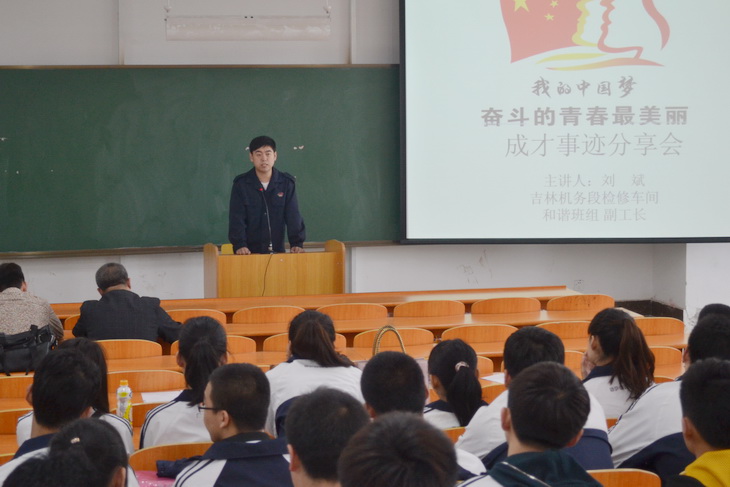 在这次成长事迹分享会中,学院团委很荣幸请到了我院09届机车车辆系优秀毕业生现任沈阳铁路局吉林机务段检修车间和谐班组副工长刘斌、我院11届机车车辆系优秀毕业生现任长春轨道客车股份有限公司高速动车组制造中心班长宋利民,返回母校为铁院学子讲述他们的奋斗青春。