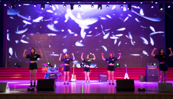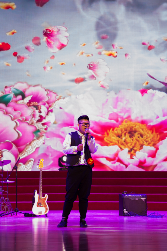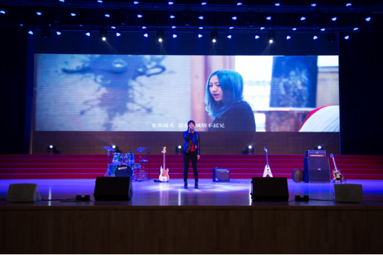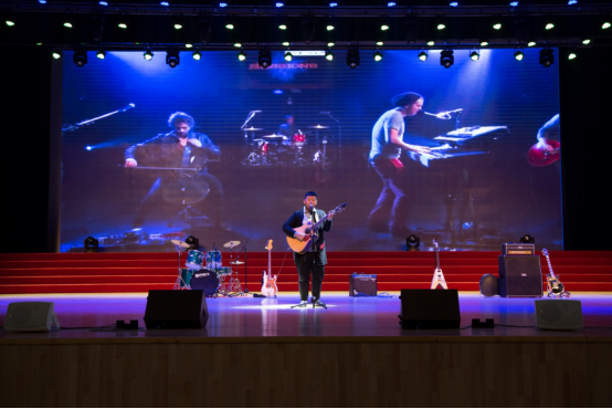 比赛前夕,音乐协会带来的暖场歌曲《蓝莲花》拉开了比赛序幕,吉他、贝斯、架子鼓,热情的音乐带来了热烈的气氛,即是欢迎全场观众,又在为选手加油助威。