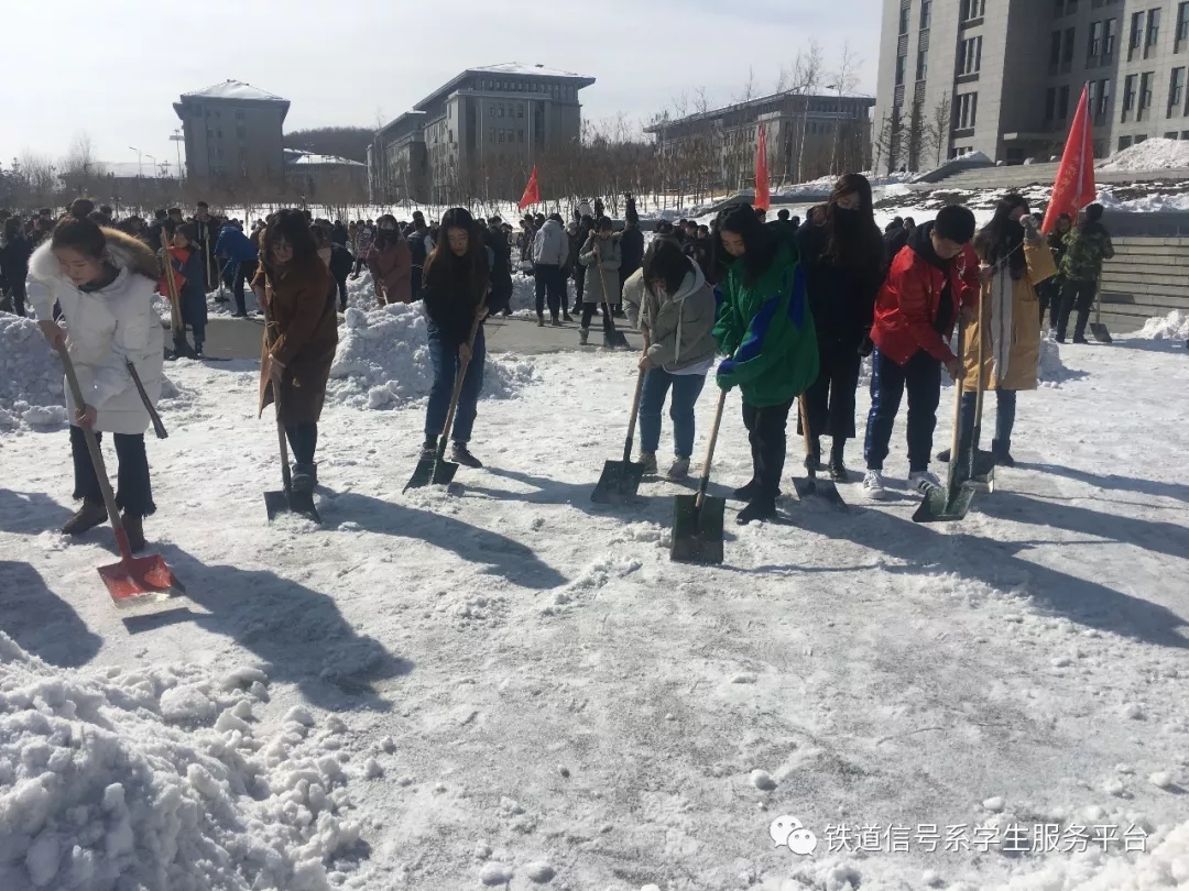 为了同学们方便出行,号召响应雷锋精神,学院团委组织了清雪活动。其中我们铁道信号学院也积极参与其中,此次活动于2018年3月9日中午12:45在天佑广场进行。由铁道信号学院团委书记李佰玲便带领团干部及各部部员,按照事先分好的区域积极的投入到扫雪工作中。