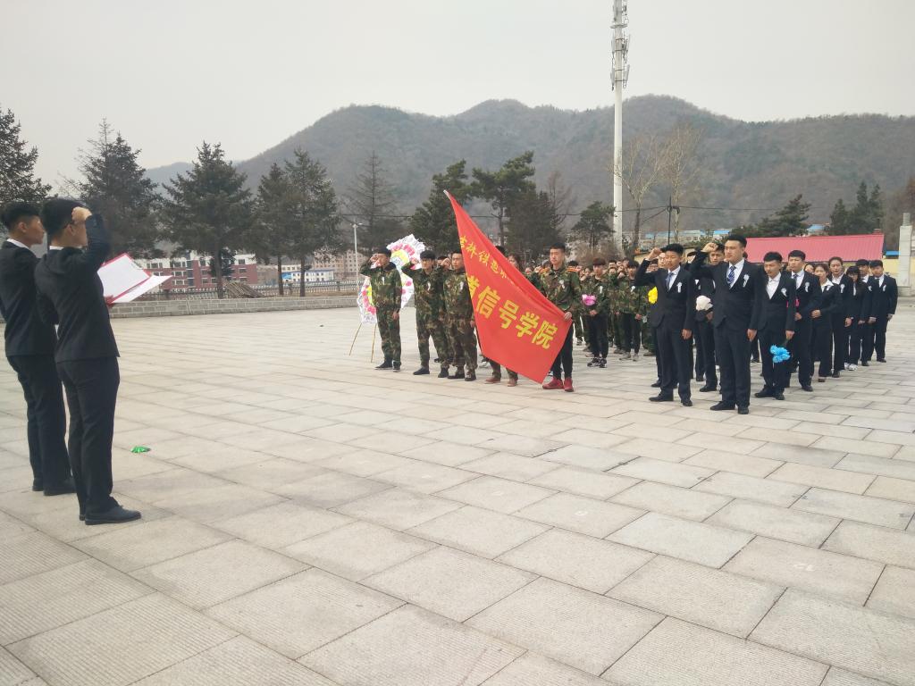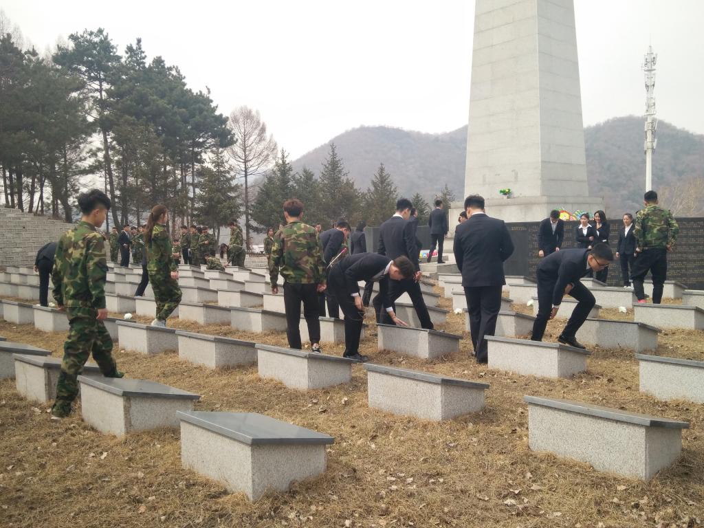 此次活动由我院学生干部杨嘉兴带领大家重温入团誓词,以此来告慰先烈的灵魂,缅怀革命精神。在为革命烈士默哀时,浓重的悲壮气氛令在场的每一位人员感到震撼与沉重。学生代表为英雄们献上花圈,以寄托对革命烈士的哀悼和感激之情。仪式结束后,大家分散活动,团委书记李佰玲带领同学瞻仰纪念碑,清扫烈士陵园。