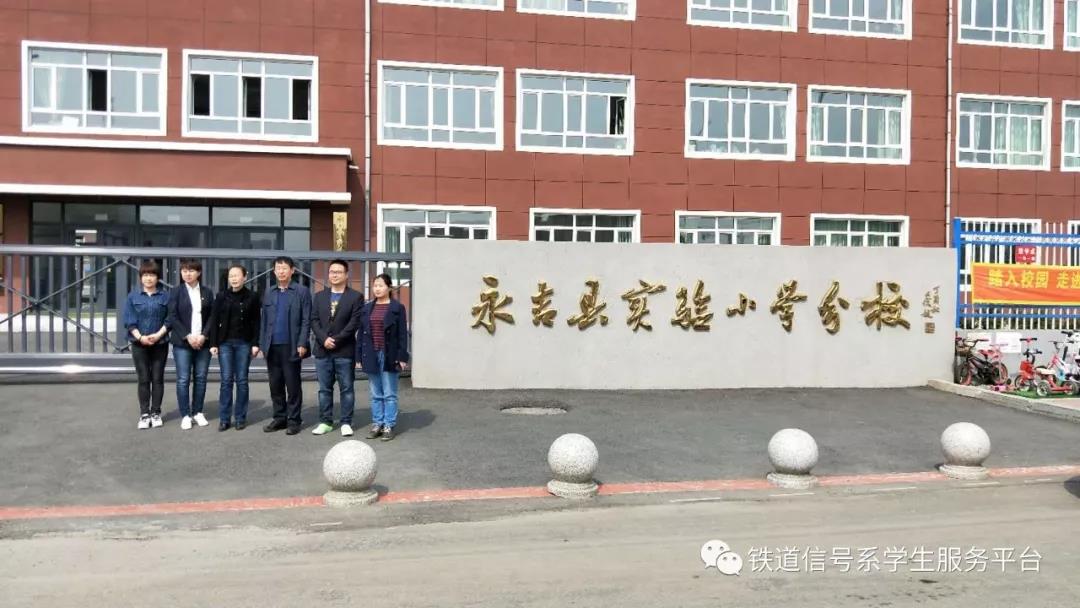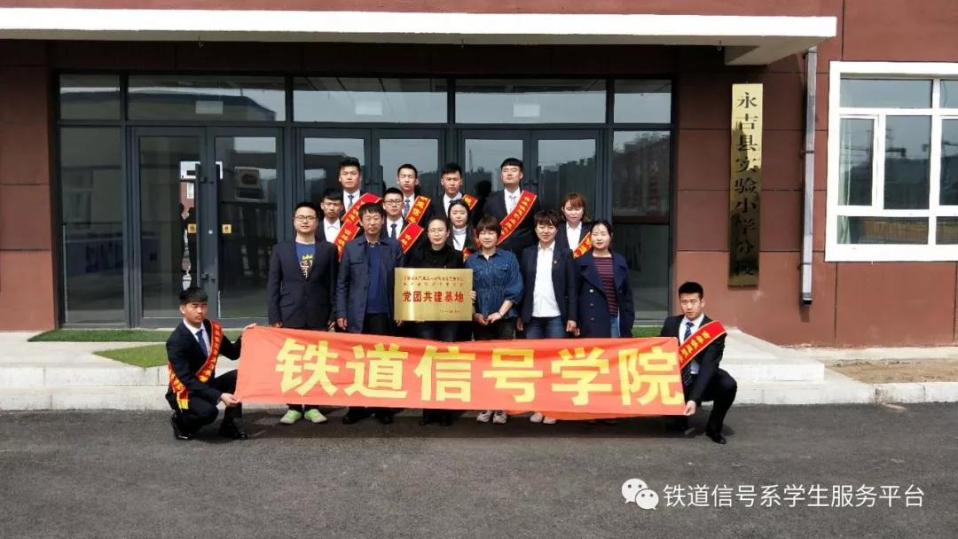 2018年4月18日铁道信号学院党总支组织教工党支部及学生党支部到永吉县实验小学参加党团共建基地的挂牌仪式,参加仪式的有永吉实验小学校长李龙须、教师王雪娇还有铁道信号学院党总支书记刘洪波、团委书记李佰玲、辅导员张举、教工党支部委员马兴兴及部分大二学生干部。