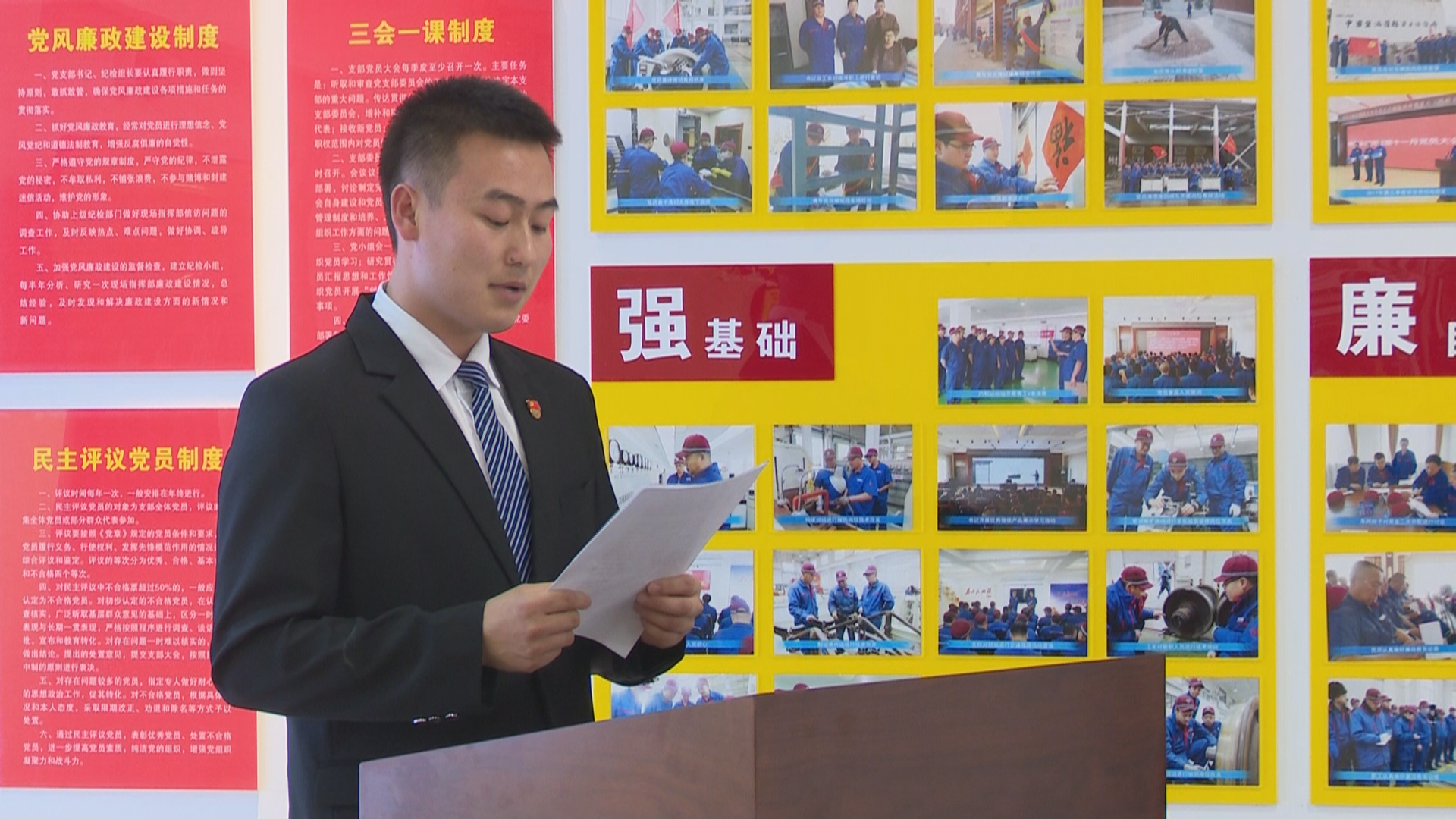 仪式上,王振彪副书记致辞。他在致辞中对于双方共建基层党组织基地和思政课实践教学基地表示祝贺,认为此次揭牌仪式开启了吉林车辆段与吉铁院合作的新篇章。校企共建给双方搭起了人才储备交流学习的互动平台,开启了校企间全面交流的直通车。他表示,双方可以在党支部建设、支部建家、特色党日活动、职工思维拓展等方面互动交流,并通过这个交流平台,在技术业务理论研讨、十九大精神学习等方面,与吉铁院的老师开展积极交流研讨。希望双方积极合作,并推动合作向更广领域、更高层次发展。