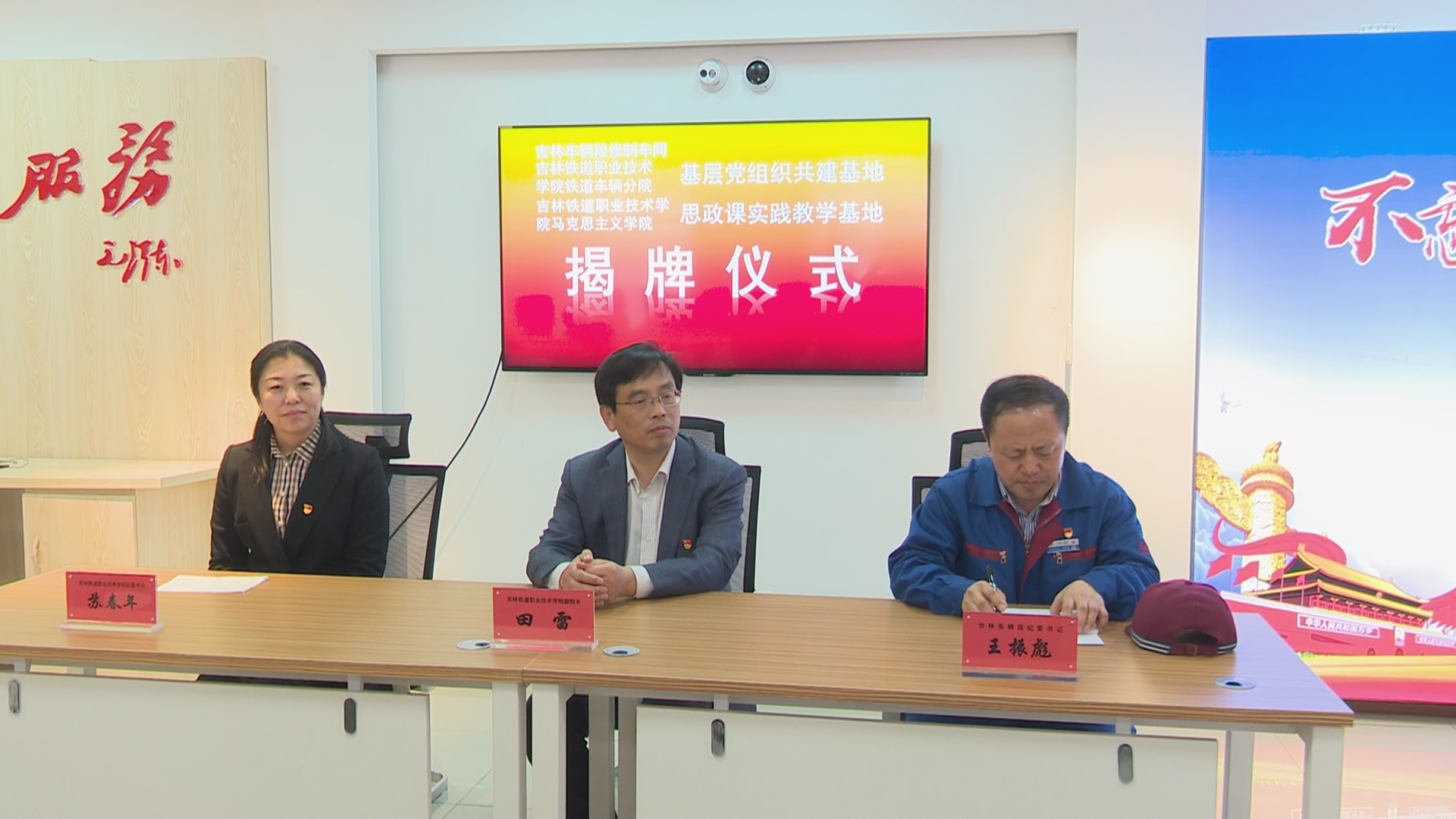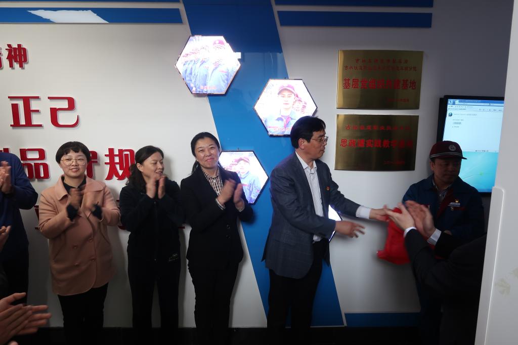 2018 年4月27日 下午,铁道车辆分院、马克思主义学院与吉林车辆段修制车间举行基层党组织共建基地和思政课实践教学基地揭牌仪式。学院副院长田雷、纪委书记苏春年、马克思主义学院院长李晓平、铁道车辆分院党总支书记高丽娴、分院院长段金辉和分院部分师生代表,吉林车辆段党委副书记王振彪、修制车间主任王浙江等出席揭牌仪式。吉林车辆段修制车间书记李郑泽主持仪式。