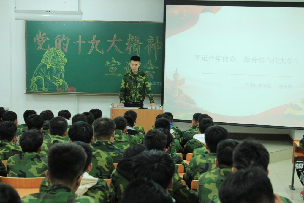 首先,机车分院2016级学生张天阳做了题为《牢记青年使命,做合格当代大学生》的主题宣讲。他以一个学生的角度,为17级学弟学妹们分享了他对十九大精神的理解。他认为,作为当代青年学生,一定要牢记使命,将自身命运和国家命运紧密地联系起来。青年一代,是未来国家发展的中流砥柱,是社会主义事业的建设者和接班人。青年学生只有认清形势,明确自身发展思路,才能在错综复杂的国际环境中立于不败之地。