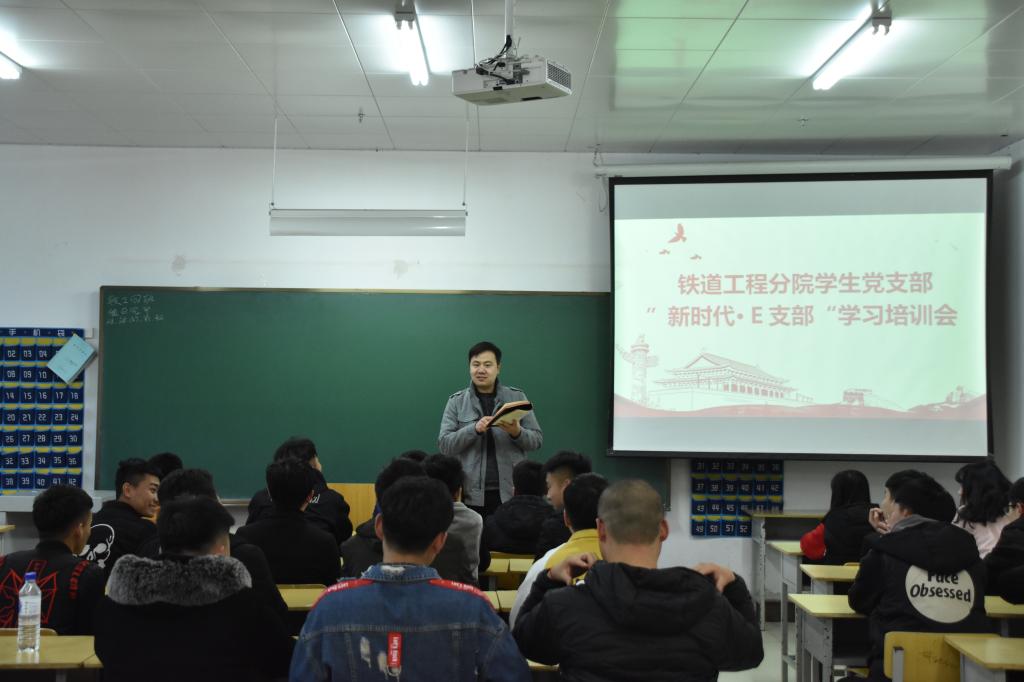 4月7日下午,铁道工程分院学生党支部举办“新时代e支部”学习培训会,分院党总支书记韩兵兵、学生党支部全体党员和入党积极分子参加了会议。会议由学生党支部书记于鹏主持。