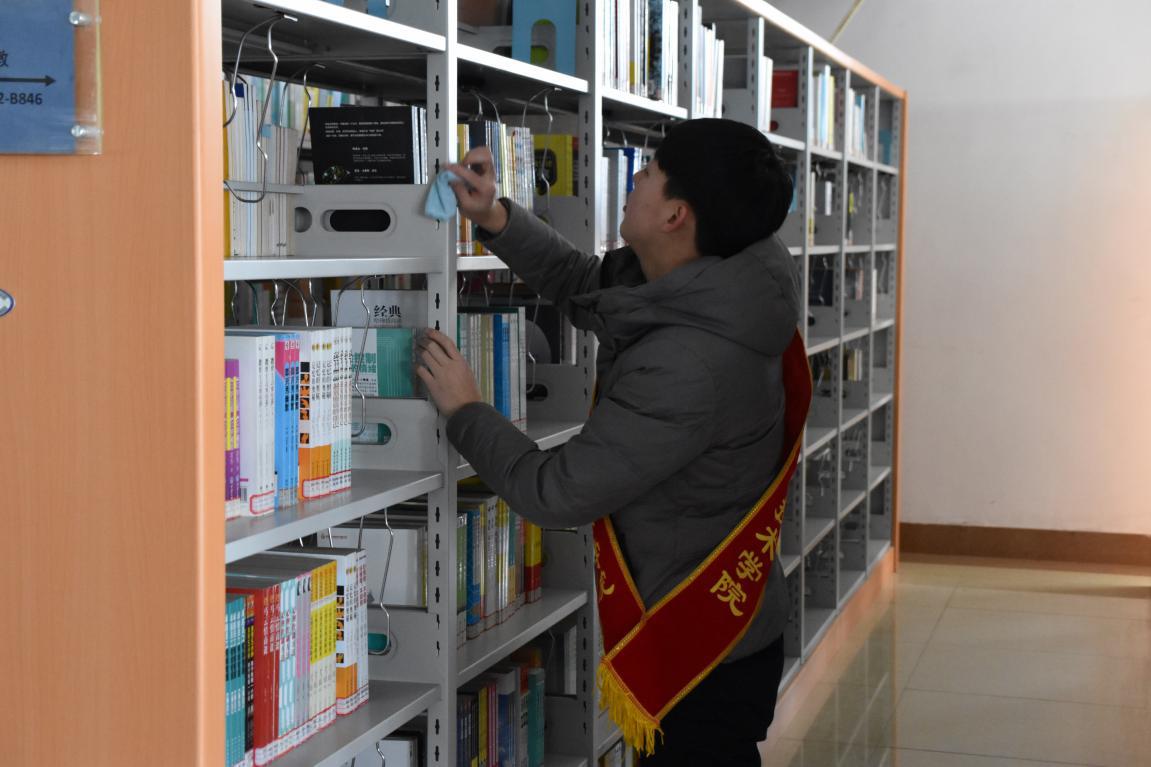 15名热情的志愿者们干得热火朝天,努力为在校师生营造了一个整洁、舒适的阅读环境。从图书馆的二楼到三楼,为了给大家留出更多的空位,他们将占座的书籍整理好放置桌子中间,一张又一张的桌子上留有他们的痕迹,一层又一层的阅览室里留有他们的足迹。参加志愿服务的同学们虽然热情高涨,但是也不忘记图书馆“入门即静”的要求,基本做到鸦雀无声,擦拭时认真细致,对书籍轻拿轻放,持续了近3个小时的劳动在管理员老师的声声称赞中圆满结束。志愿者们在这里整理图书,规范读者秩序的同时也感受到院图书馆的浓厚文化氛围,触摸到灵动的书香,观察到许多温暖人心的画面。三个小时的劳动时间很短暂,可这三个小时带给志愿者们的正能量却能令他们受益终生,让他们有更多机会接触图书,更加爱惜这些“精神食粮”。