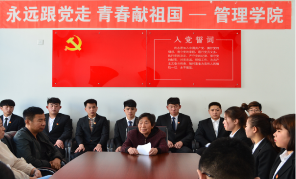 本次活动,管理分院提前联系河东社区,非常荣幸的邀请到吉林市第十二、十三届党员代表、吉林市优秀共产党员高桂芝老同志参加本次活动,专程给参加本次活动的入党积极分子上党课。高老前辈今年已到耄耋之年,曾是一名基层工人,在工作中兢兢业业,认真负责。退休之后,继续发挥余热,经常组织社区的退休党员、群众进行义务劳动;帮助社区工作人员进行家访,在社区中获得了极高的声望。在热烈的掌声中,高老前辈开始了发言。“虽然退休,但作为党员我依然要发挥热量”,“党员就是要冲在前面”;高老前辈铿锵有力的话打动和鼓舞着在座每一个人,老前辈的发言时间不长,但在座的每一位同志都深受教育。