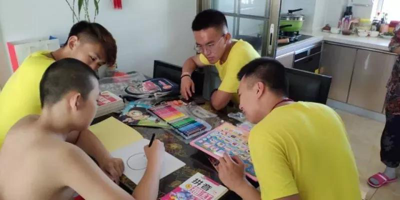 在自闭症儿童家中,志愿者们的到来使孩子和家长们内心倍感温暖。志愿者同孩子一起做游戏、聊天、亲密互动,还为他们送去文具、图书等慰问品。孙书记与孩子家长沟通,了解孩子们日常情况和喜好,摸索和自闭症儿童交流沟通更合适的方式方法。