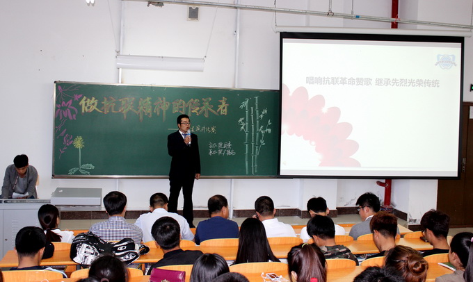 为纪念世界反法西斯战争、中国人民抗日战争胜利70周年,展现当代大学生不忘国耻、振兴中华的精神风貌,6月23日下午,由学院团委举办的"做抗联精神的传承者"大学生演讲比赛在教学楼东201举行。学院团委书记盛继前、铁道运输系学办主任孟家辉、铁道工程系学办主任于鹏、铁道车辆系团委书记曹阳、铁道机车系辅导员李超群、汽车工程系辅导员闫瑞雪、学院团委干事赵丙阳出席比赛现场并担任评委。