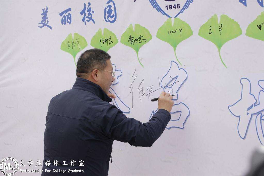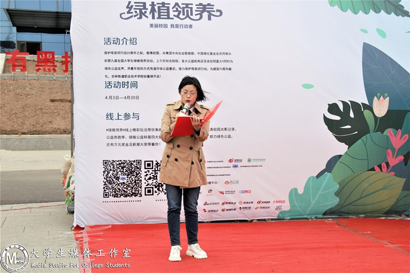 活动中,党委副书记徐彤宝宣布“第九届全国大学生绿植领养吉林铁道职业技术学院站”活动正式启动,并现场签名,助力学生活动。