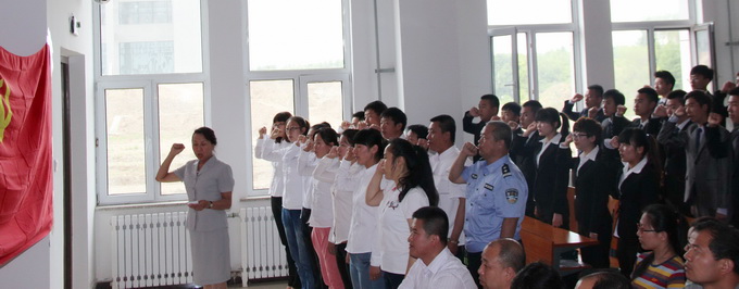 组织员办公室副主任秦育洁同志带领新党员宣誓