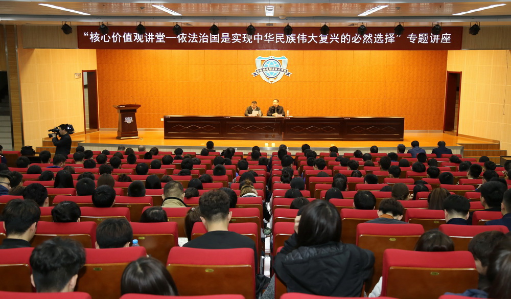 为深入学习习近平总书记系列重要讲话精神,贯彻中央关于加强和改进党的群团工作及进一步加强和改进新形势下高校宣传思想工作的指示要求,切实加强我院青年学生的思想引领,413日下午,由中共吉林市委宣传部、吉林市社科联和吉铁职院主办吉林市社科联学会部和学院团委承办的“核心价值观讲堂——依法治国是实现中华民族伟大复兴的必然选择”专题讲座在学院图书馆报告厅举行。