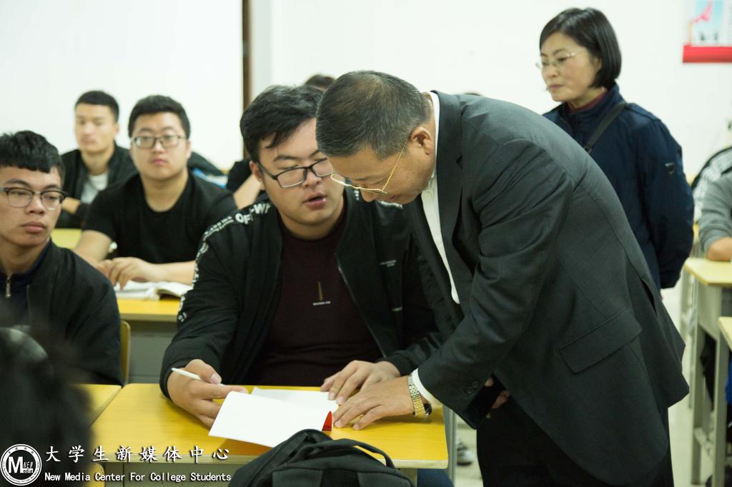 925日晚,学院党委副书记徐彤宝来到教学楼,检查学生晚自习工作。