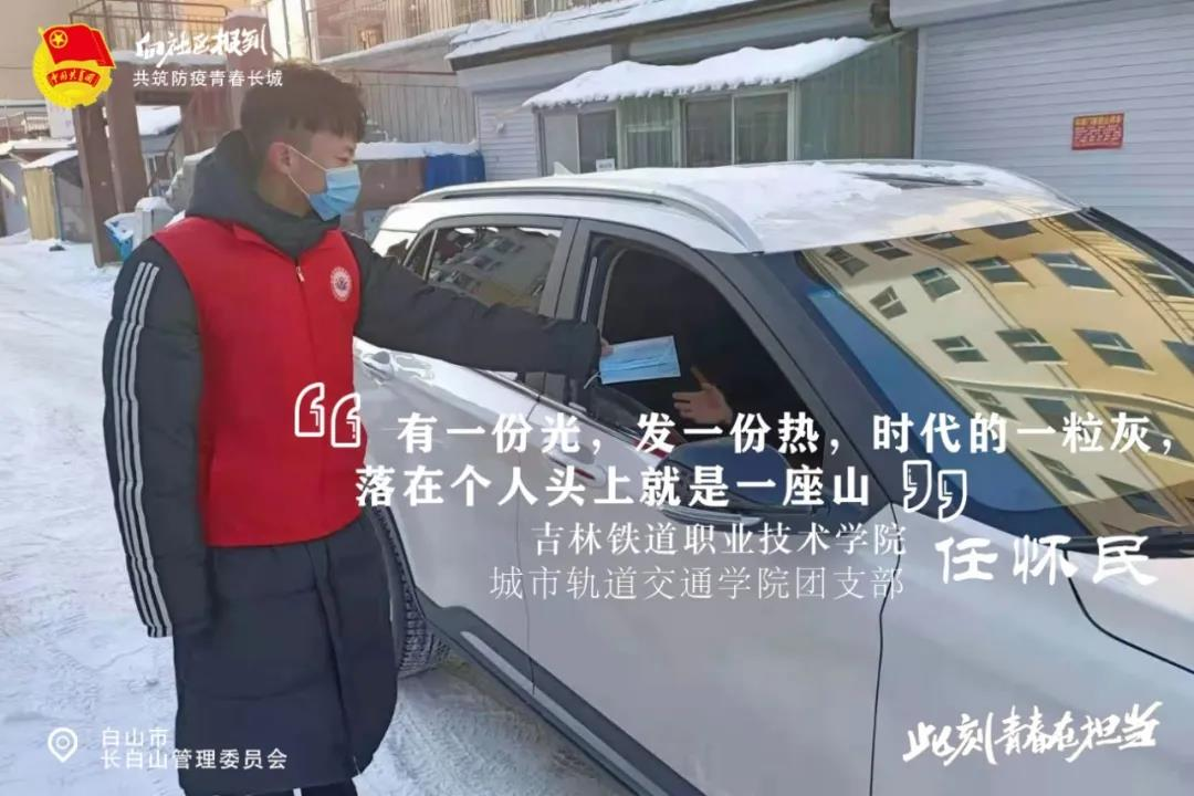 任怀民在疫情期间看到白山市长白山管委会志愿协会的征集令时,他想到:作为当代大学生,有责任和义务投身到防疫防控工作当中去。就这样他报了名,成为了长白山管委会的一名志愿者。在志愿服务期间,他主要负责集中隔离人员的生活物资采购工作和协助联络员外围工作等。他坚持“疫情防控物资优先采购”的原则,配合组长做好隔离人员服务保障工作,但运送物资分配过程中格外困难,他仔细核对、认真应对。长白山池西区的冬天冰雪严寒,有时冻的实在受不了,他垫垫脚、跳一跳。再想想疫情防控中最前线的工作人员,又燃起了斗志,继续努力工作。虽然环境相对寒冷,他却感到高兴,因为大部分群众都很配合防疫工作,还有群众关切的提醒志愿者们注意防护,让他在工作中增添了更多热情。他相信:没有战胜不了的疫情!相信大家一起手拉手、心连心,一定能打赢这场疫情防控阻击战!