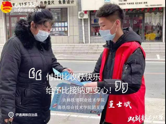 董士斌的家乡是伊通满族自治县,是他生活了20年的地方。他说:“家乡有难,我义不容辞。”成为一名志愿者就是他回报家乡的第一步,从第一次新冠疫情爆发的时候他就参加了街道组织的志愿者服务队。2021年1月,这已经是他第三次参加志愿者活动了,他的主要工作就是记录排查有没有新的返乡人员、整理回乡人员的档案、发放消毒药品、宣传防疫知识、增强更多人的防护意识等。董士斌说:“虽然我不像医生一样可以直接治病救人,但是我一定会尽我自己最大的努力守护我的家乡。”